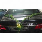 BONNET The front of the wind screen is decorated with flowers like green Cymbidium Orchids, Roses and complemented by Hypericums, Lanuginosa, Kermit Pom Pom, and lush Foliages (Ivy, Ruscus).