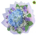 $70 – 1 stalks of Hydrangea surrounded by Baby’s Breaths, Statices and Salal tips (as shown)