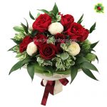$93 – 12 stalks of Roses, accompanied with ppong ball (5), Euphorbia Marginata and Italian Ruscus (as shown)