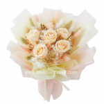$75 – 3 blooms of Roses, complemented with dried flowers (Phalaris, Oats, Hydrangea, Rice Flower etc.) (as shown)