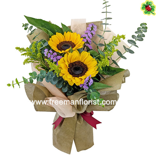 $39.90 – 1 stalk of Sunflower, 1 stalk of Gold Pheonix, 2 bloom of Statices and 3 stalks of Eucalyptus (cut to use)