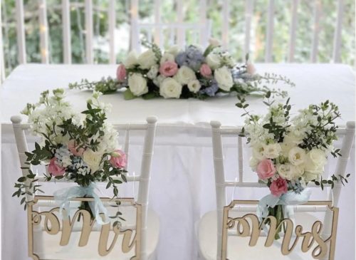 – Bride and groom chairs +